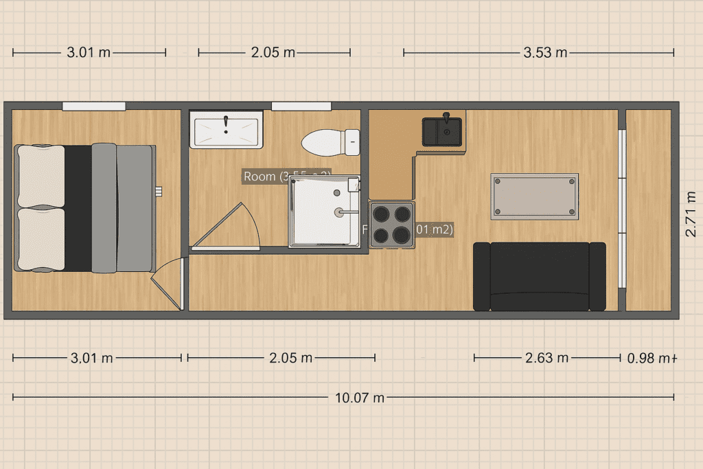 Un espacio compacto, móvil y con todo lo que necesitas para vivir sin depender de nadie.